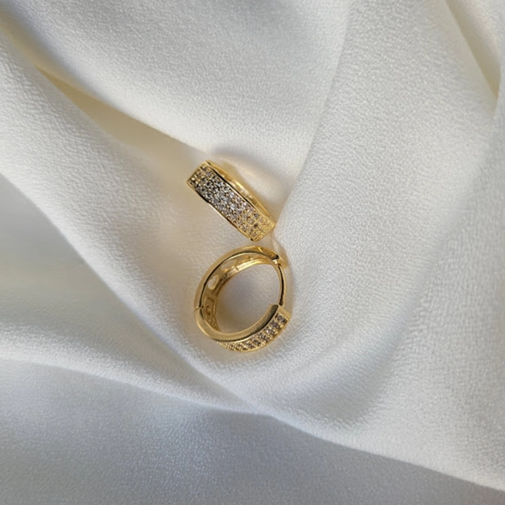 Argola 3 Fileiras Cristal – Banhado a Ouro 18K