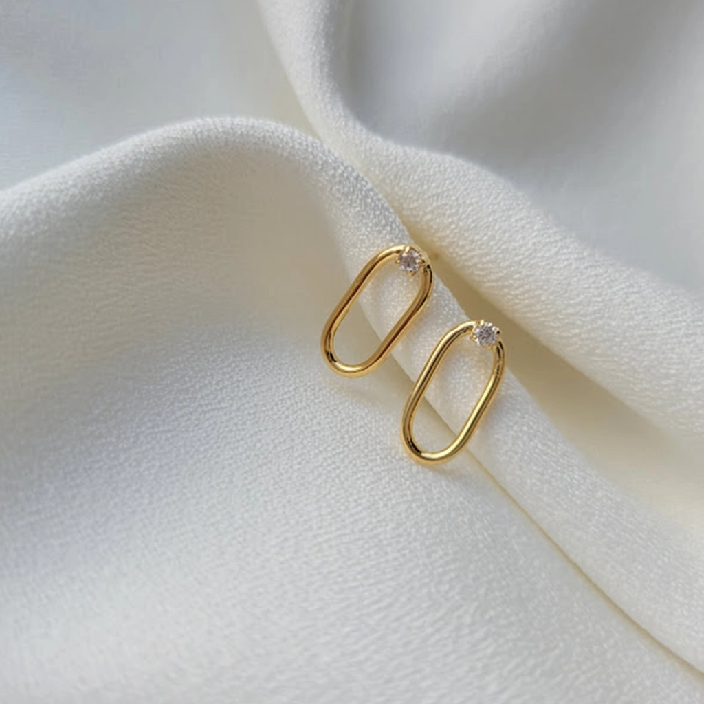 Brinco Oval com Ponto de Luz – Banhado a Ouro 18K