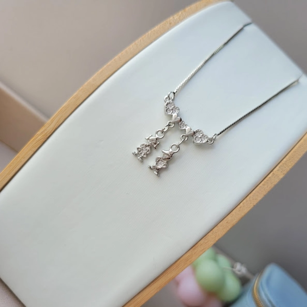 Colar Corações com Pingente Filhos (Casal) Cristais – Ródio Branco