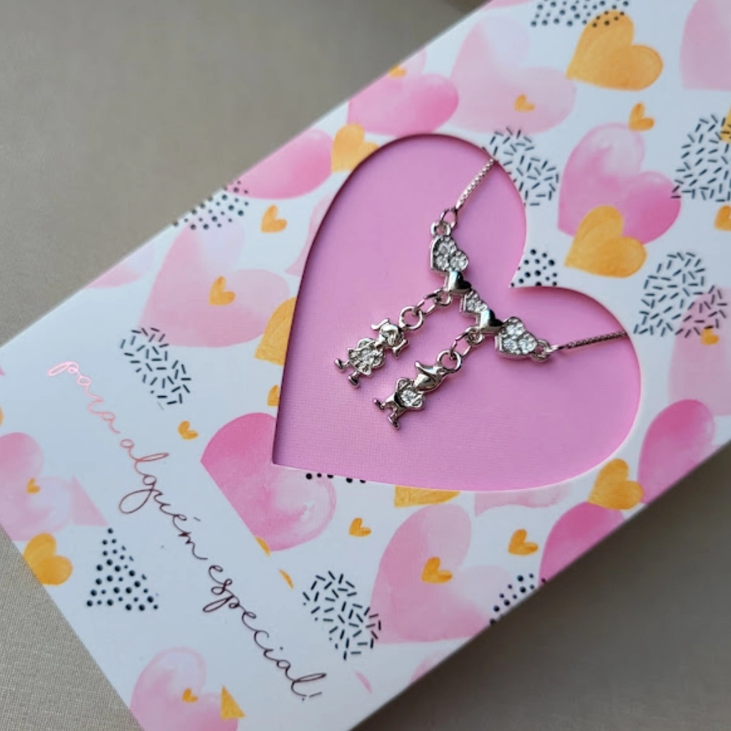 Colar Corações com Pingente Filhos (Casal) Cristais